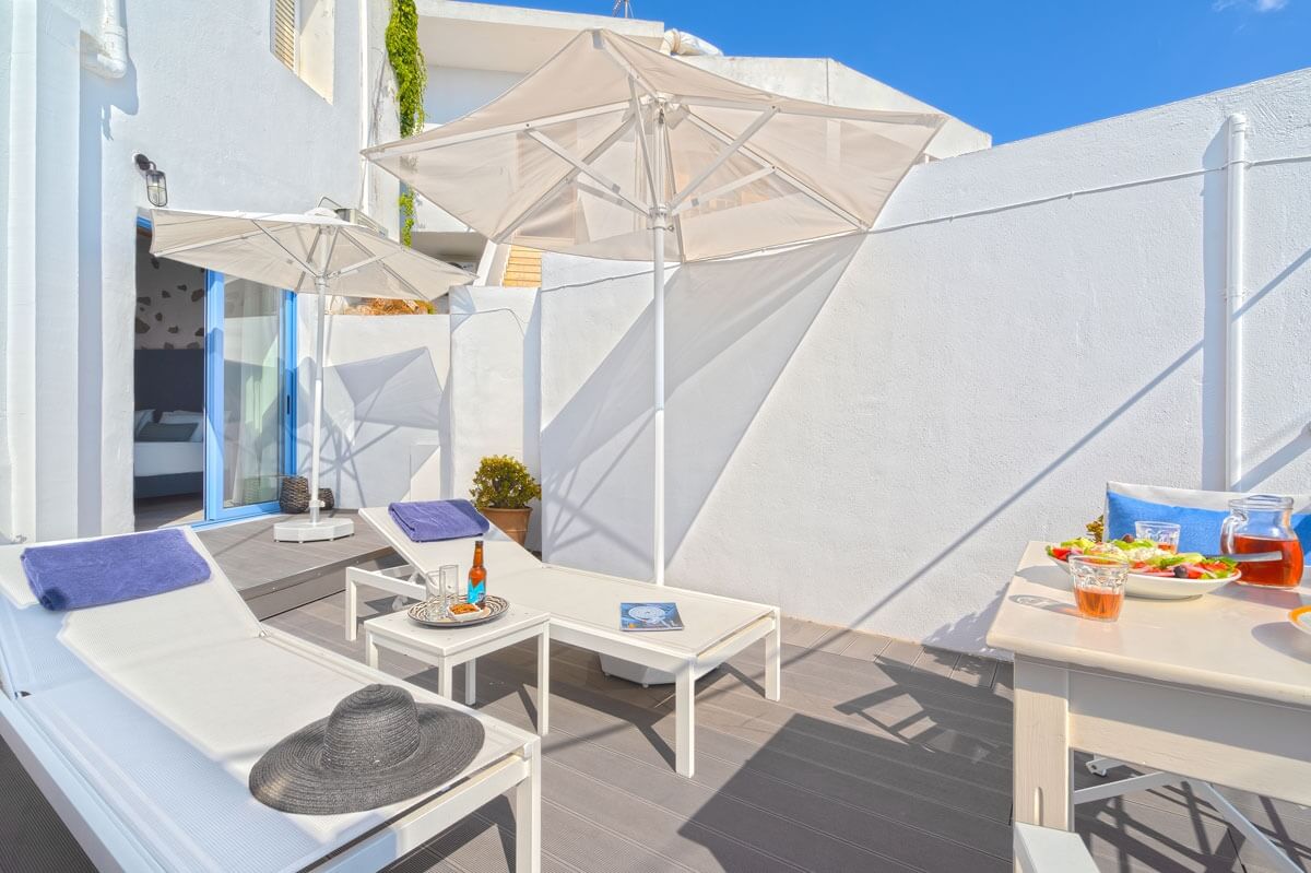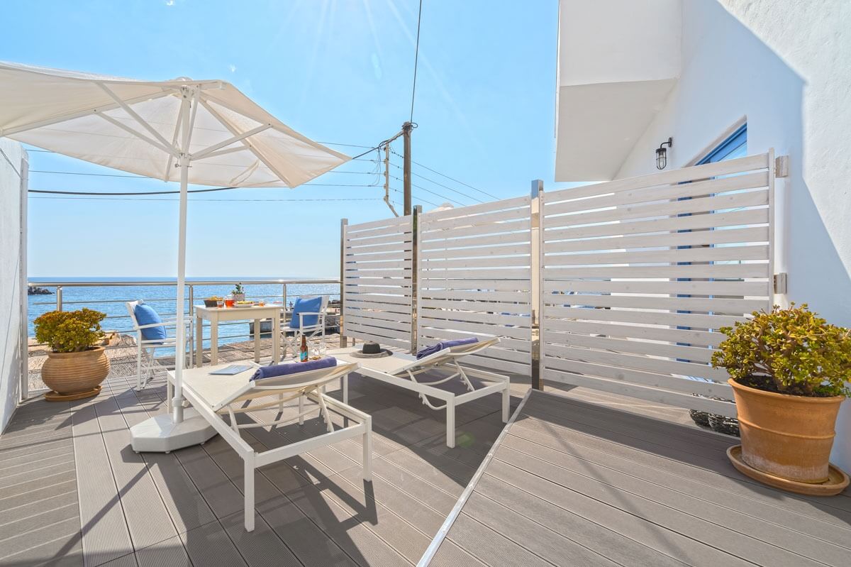 The highlight of this accommodation is the spacious private terrace. It is an idyllic spot to enjoy the morning sun, unwind during the day, or share romantic evenings beneath the summer sky.
